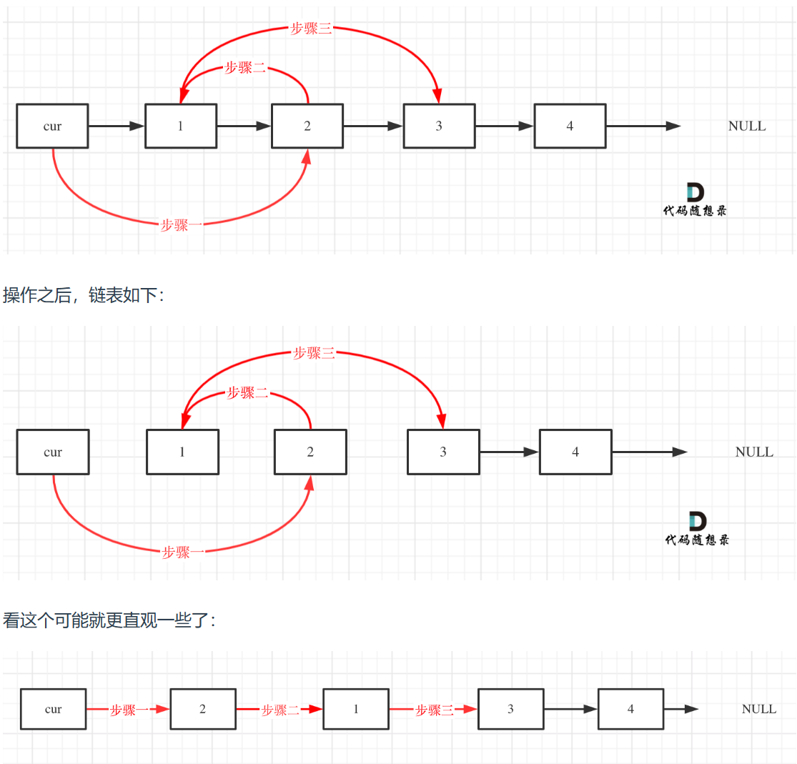 dummyHead->next = head; // 将虚拟头节点指向原链表的头节点